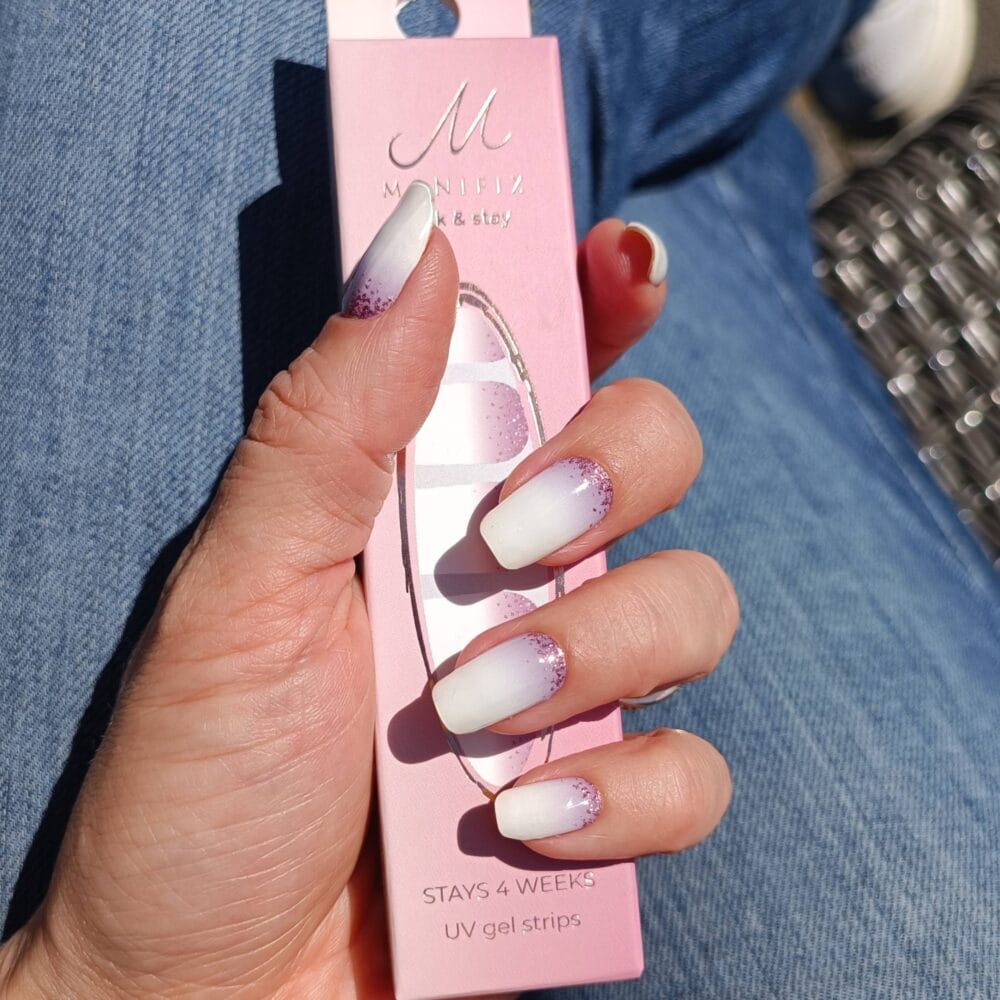Glitter Glam Babyboomer UV-Nagelfolien – Elegante Babyboomer Nails mit zartem Lila-Verlauf & funkelndem Rosé-Glitzer ✨💕 | Hält bis zu 4 Wochen | Schnelle Anwendung in nur 15 Minuten | 97,2% Wiederkaufsrate | Jetzt Glitter Glam Babyboomer Nails sichern!