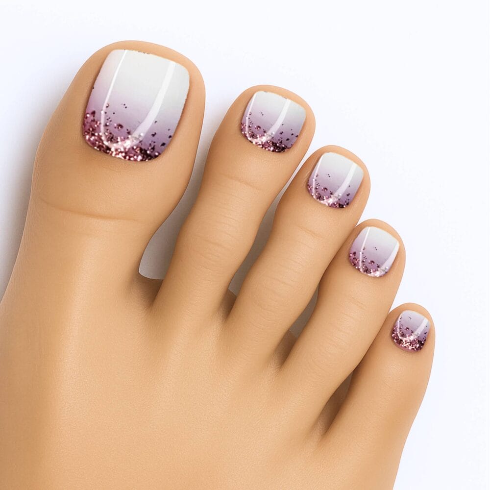 Die Glitter Glam Babyboomer UV-Nagelfolien vereinen den beliebten Babyboomer-Look mit einem modernen Twist: ein sanfter Lila-Verlauf, der in funkelnden Rosé-Glitzer übergeht. Perfekt für alle, die feminine, elegante und zugleich trendige Nägel lieben. 💕