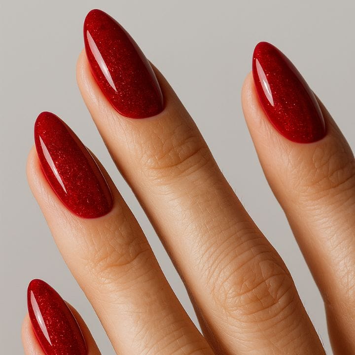 Merry Red Glitter UV-Nagelfolie für rot glitzer Gelnägel zum Aufkleben – Strahlende, rote Glitzer Nägel zum Aufkleben, die wie Gel halten und natürlich wie Nagellack wirken. Bis zu vier Wochen Halt und sanfte Entfernung mit Öl, ideal für kurze Nägel. Für glamouröse Glitzer UV-Nägel, die begeistern und die Nägel gesund halten.