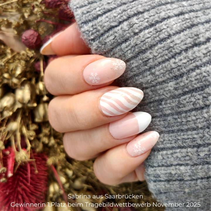 Das Wonderland Winter Nails Design ist ideal für kurze Nägel und bringt den Charme des Winters auf deine Fingerspitzen. Mit diesem winterlichen Design, das Schneeflocken und feinen Glitzer kombiniert, erhältst du stilvolle und gleichzeitig pflegeleichte Winter-Nägel. Perfekt für einen dezenten, eleganten Winter-Look, der lange hält und deine Nägel strahlen lässt.